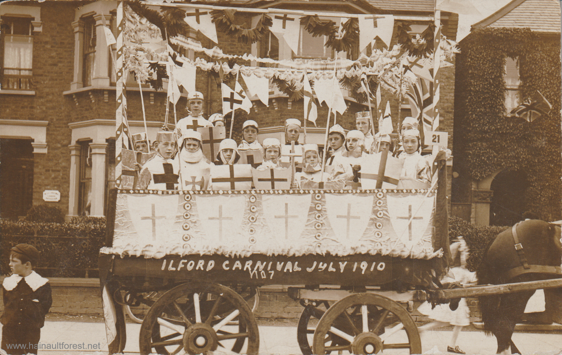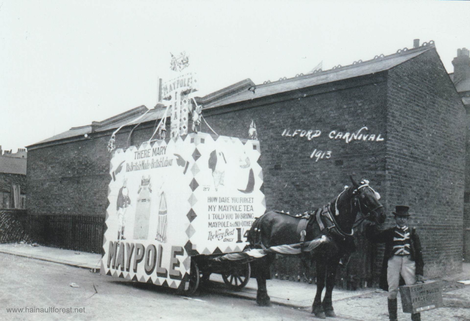 Park Ward's prize-winning trade car 'Ye Olde English Wedding' was entered into the carnival by Ernest Frank Hart, a jobmaster who rented out horses and carriages at his livery stable in Ilford Lane. During the event a silver horseshoe went missing from the Bride's carriage. A newspaper advert promised a liberal reward for its return. Whether it was recovered is unknown.